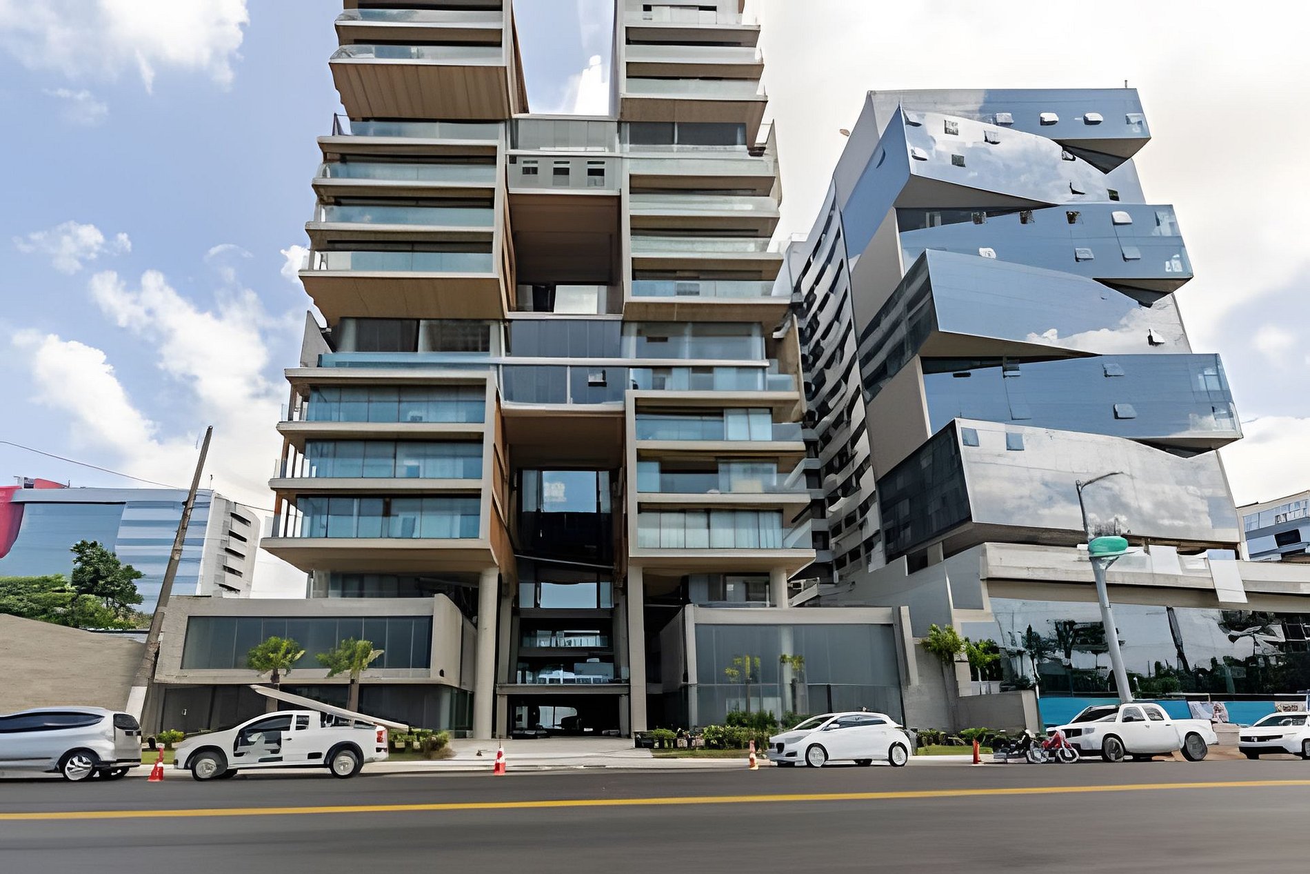 The building is modern, secure, and tech-forward, offering facial recognition access, five elevators (including three panoramic ones), 24-hour front desk, and a robust security system.