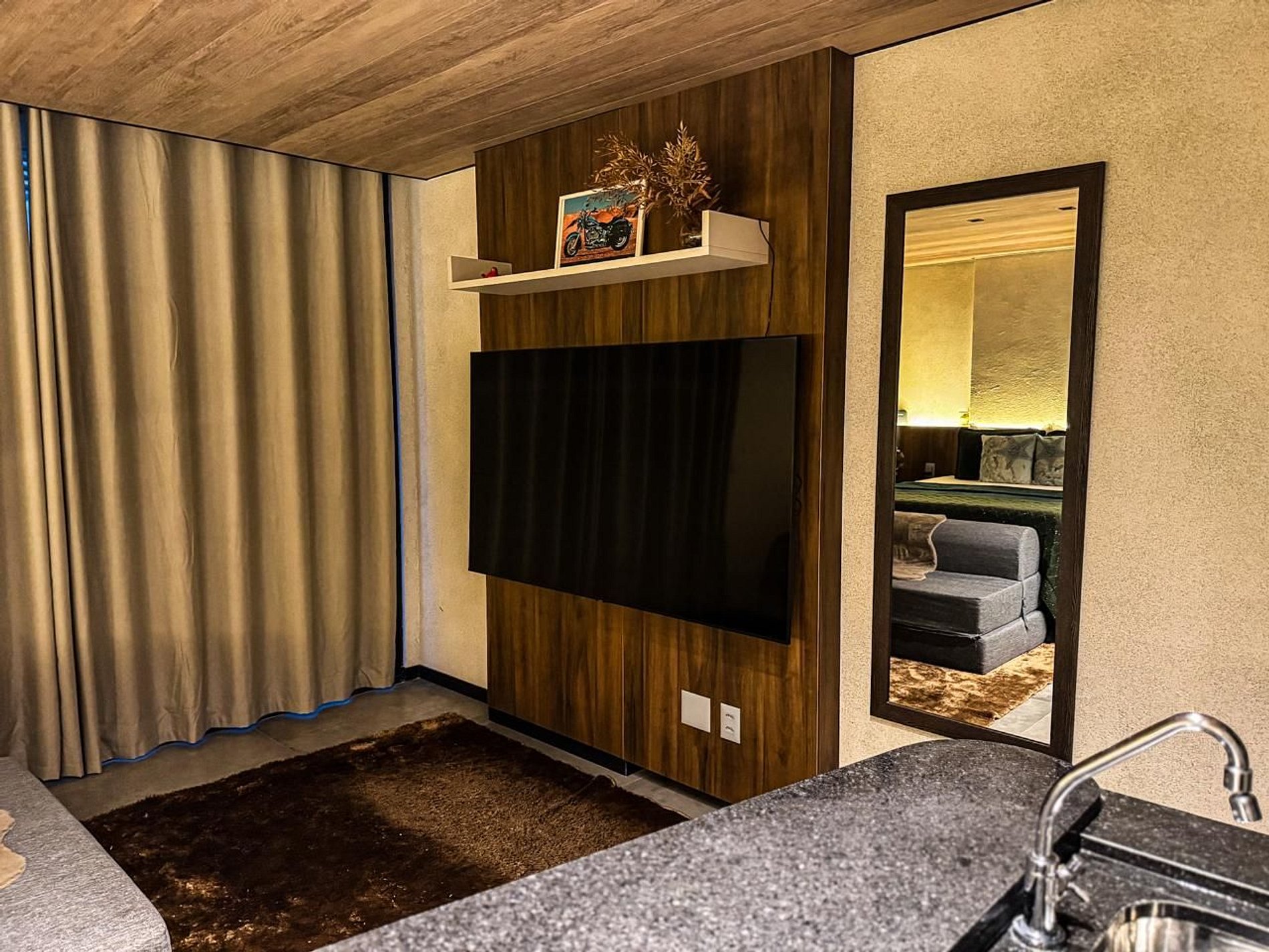 • Tecnologia e Conectividade: TV de 70 polegadas, iluminação projetada para relaxamento e duas redes de Wi-Fi de alta velocidade, ideais para um home office eficiente.