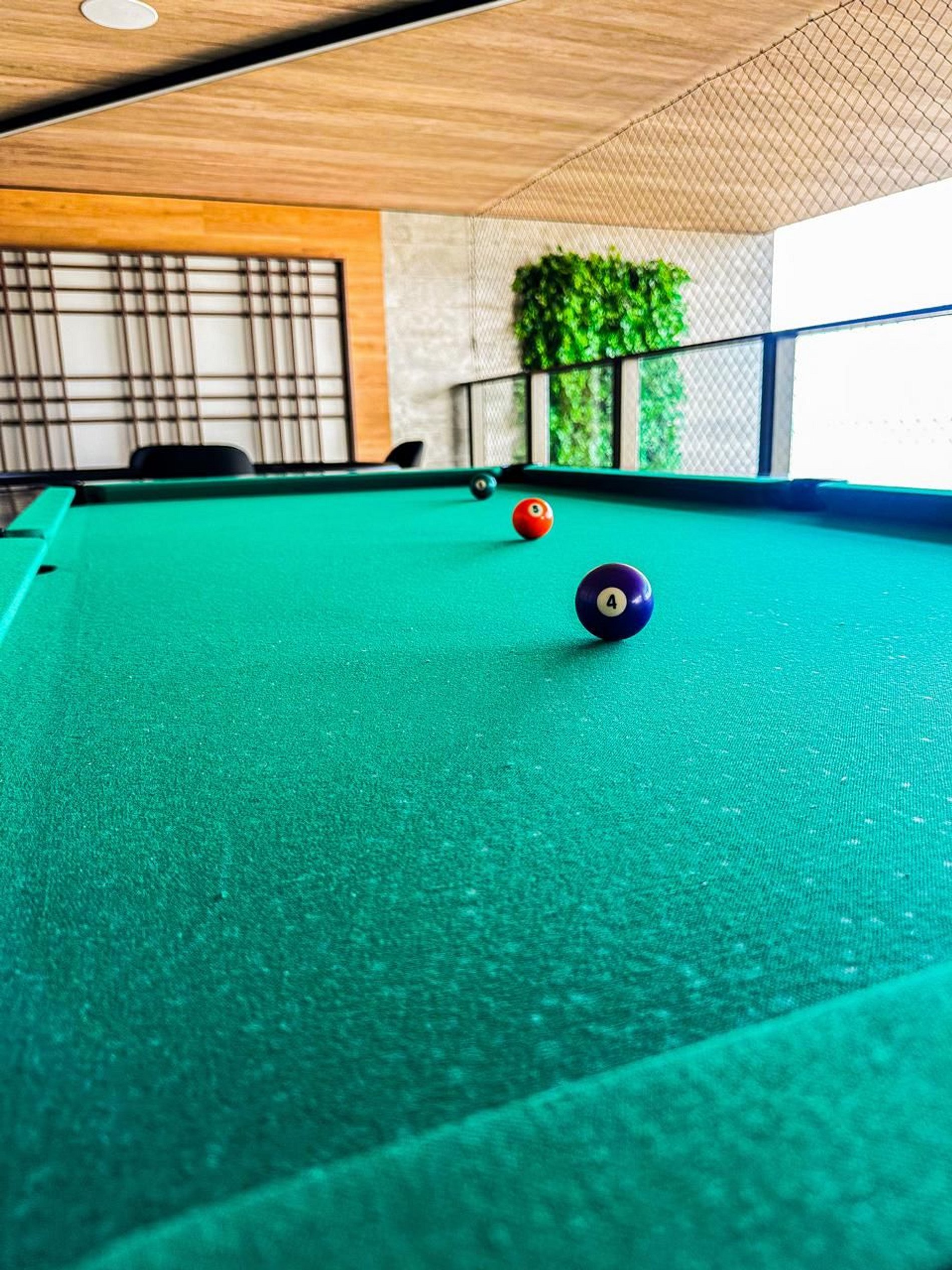 salão de jogos com bilhar e totó