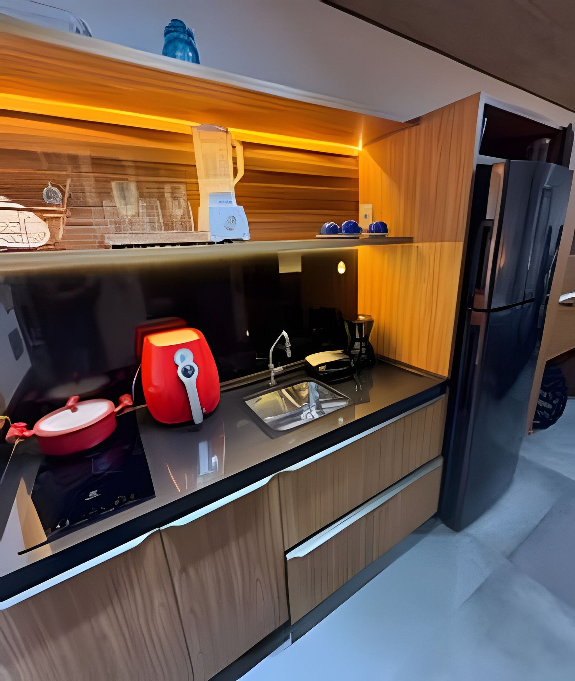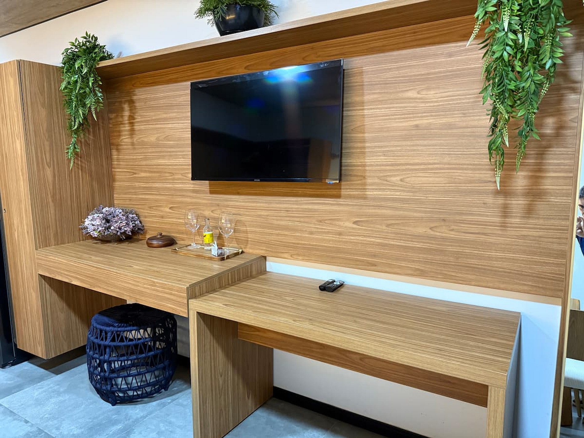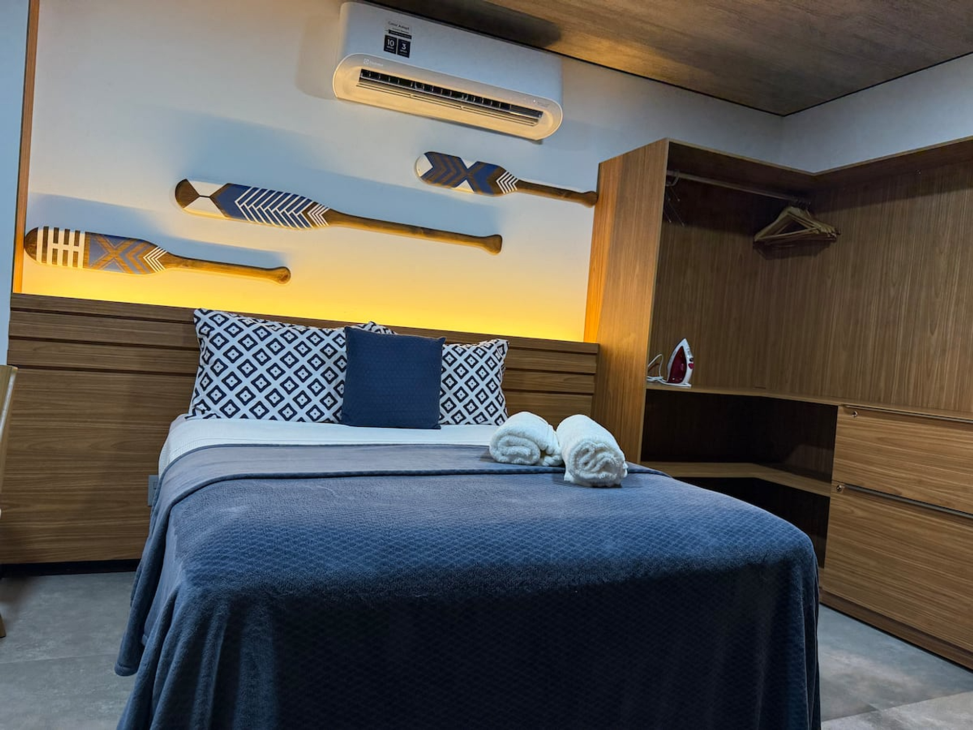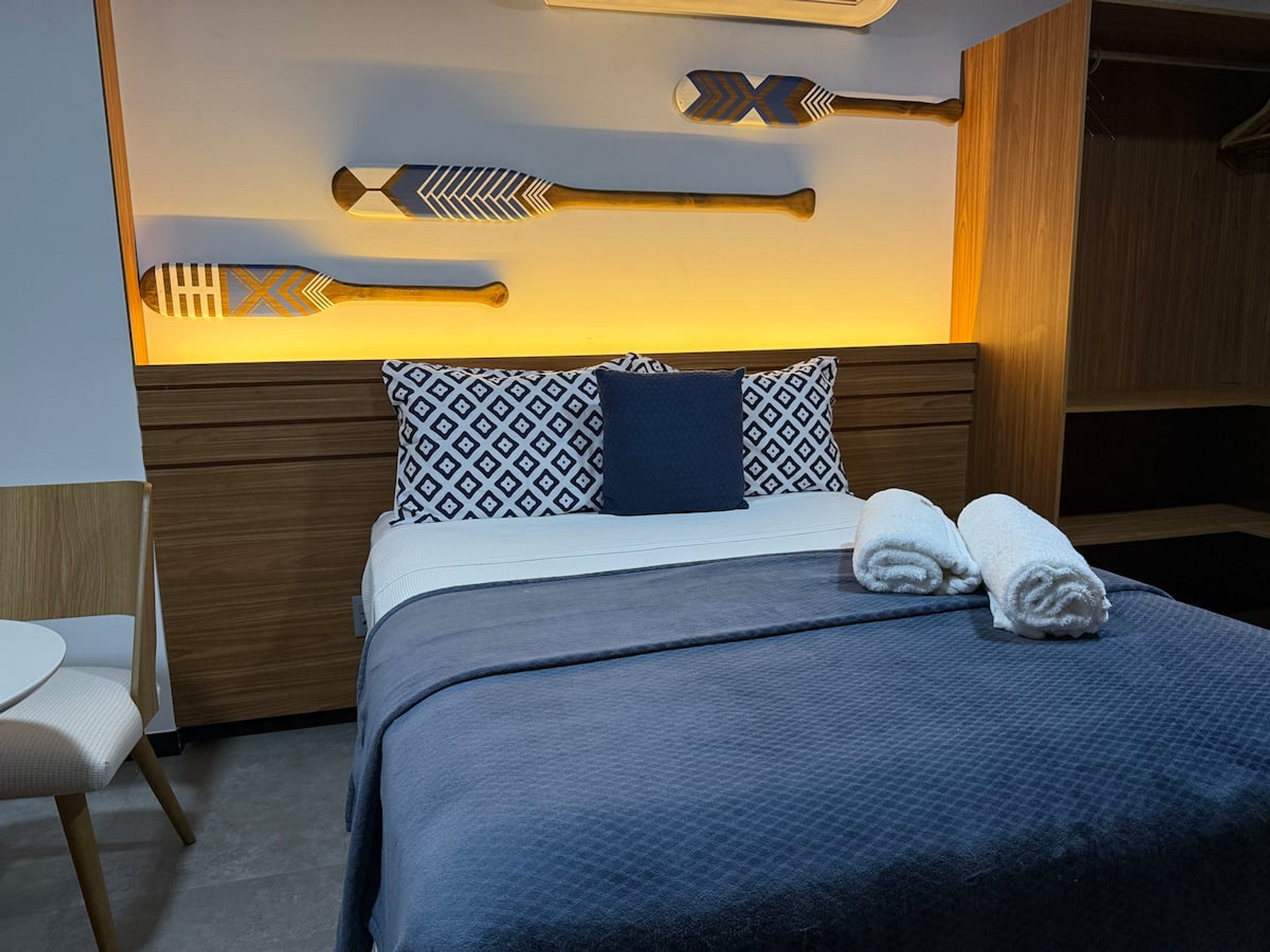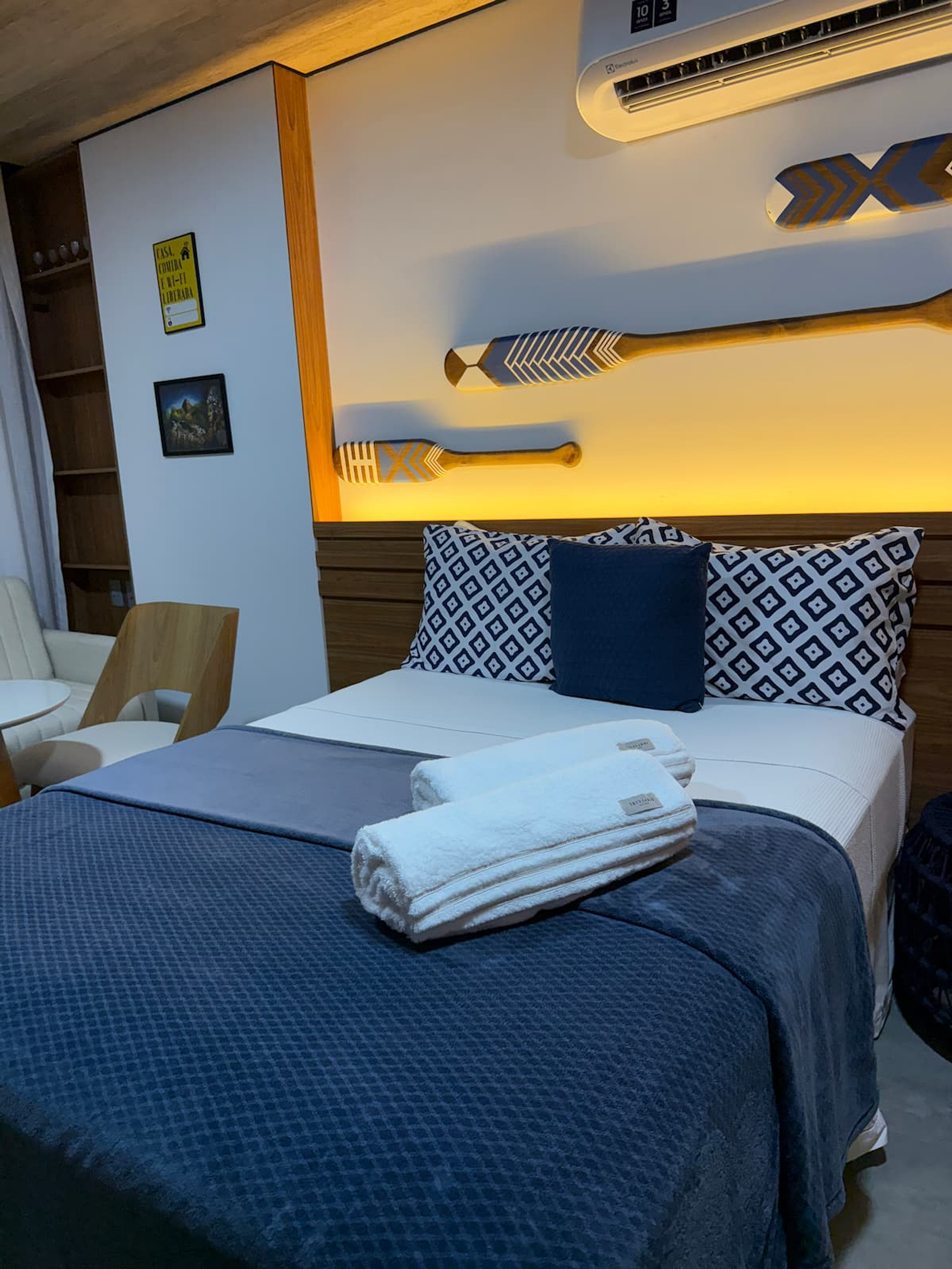 Nosso estúdio conta com garagem e recepção 24 horas. Primamos pelo conforto. A cama é extremamente aconchegante, com enxoval de alto padrão para noites perfeitas de descanso. O espaço é completo e funcional, equipado com ar-condicionado, TV, Wi-Fi e cozinha prática, ideal para quem gosta de preparar suas refeições. O grande diferencial é a varanda privativa, onde você pode relaxar e apreciar o pôr do sol sobre o mar, um espetáculo que transforma sua estadia em uma experiência inesquecível.